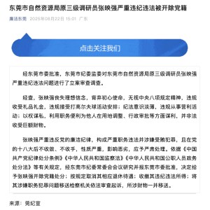 据东莞市纪委监委官方微信公众号“廉洁东莞”8月22日消息,东莞市自然资源局原三级调研员张映强严重违纪违法被开除党籍。经东...
