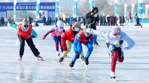人民网哈尔滨1月17日电 (记者徐成龙)1月16日,“冰超”·2026年黑龙江省大众速度滑冰挑战赛在上合冰雪体育示范区群众冰雪体育运动基地拉开帷幕。来自全省各地的25支队伍、200名选手齐聚“冰城”,在松花江冰面上展开了一场速度和耐力的双重比拼。